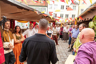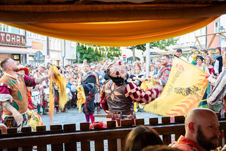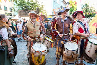Die Tänzelfest-Landsknechtstrommler Kauf-beuren e.V. besuchten als eine von vielen Wandergruppen den Lagerlebenstand.